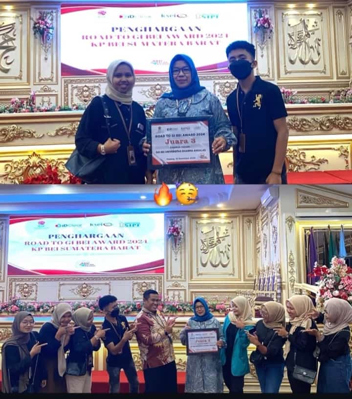 Padang, 17 November 2024 — Prestasi membanggakan kembali diraih oleh Universitas Dharma Andalas melalui Galeri Investasi Syariah BEI (GISBEI). Dalam ajang Road To GI BEI Award 2024 yang diadakan oleh Kantor Perwakilan Bursa Efek Indonesia (KP BEI) Sumatera Barat 16 November 2024, GISBEI UNIDHA berhasil meraih posisi tiga besar. Acara penganugerahan berlangsung meriah di Auditorium Universitas Baiturrahmah, Padang.